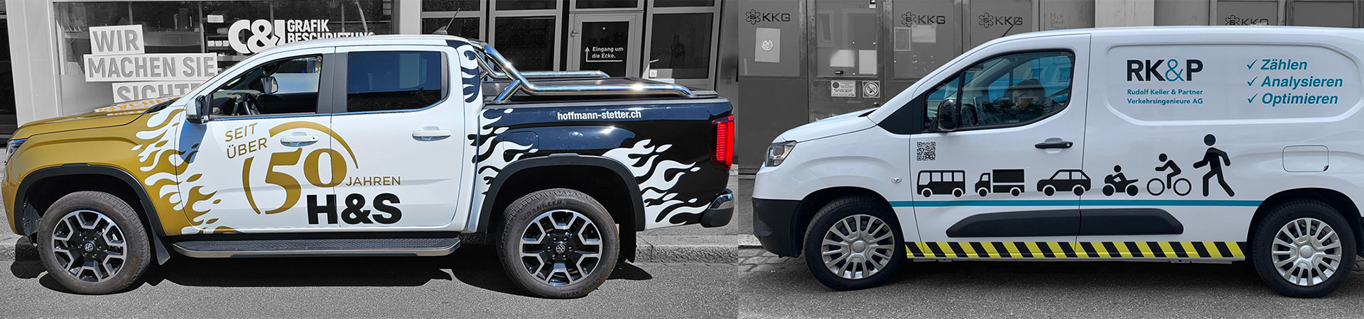 Die Anwendungsmöglichkeiten sind vielfältig. Fahrzeuge, Firmen- oder Gebäudebeschriftungen, Textilien uvm. Die Folienwahl entscheidet, ob eine Beschriftung kurz-, mittel- oder langfristig sein soll. Mit Farbfächern definieren wir Ihren Farbton.